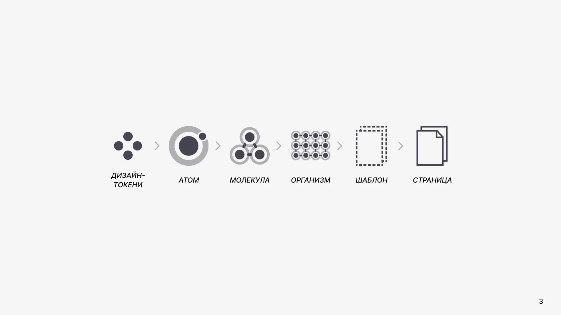 У світі дизайну існує щось атомарне, коли ми переходимо від меншого до більшого. Тобто, наш дизайн складається з атомів — дрібних складових елементів, таких як кольори, кнопки та інше.